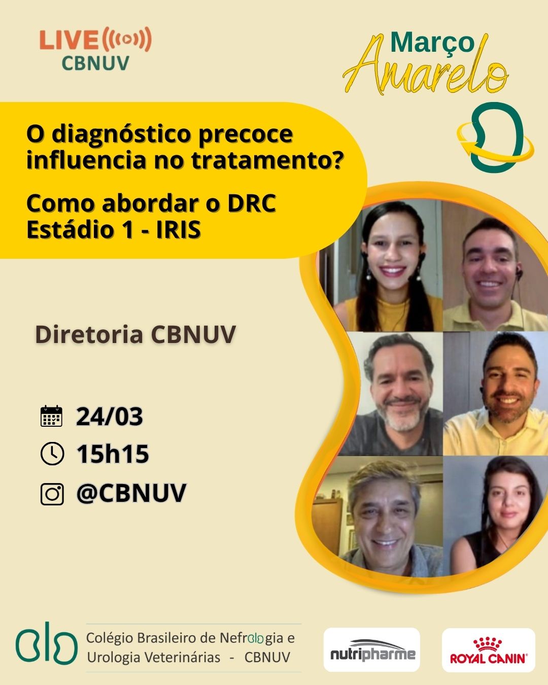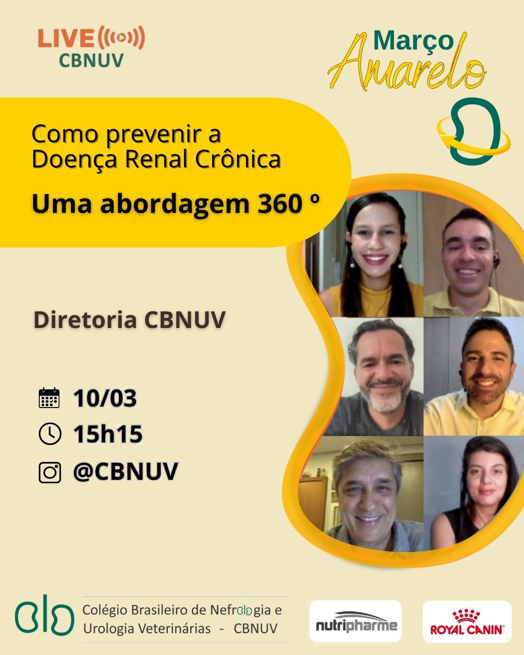Com o intuito de promover a nefrologia veterinária, estimulando a atualização de nossos colegas médicos veterinários e o intercâmbio de conhecimento, o CBNUV realiza regularmente, ÀS TERÇAS-FEIRAS, ÀS 15H15, LIVES no instagram https://www.instagram.com/cbnuv/